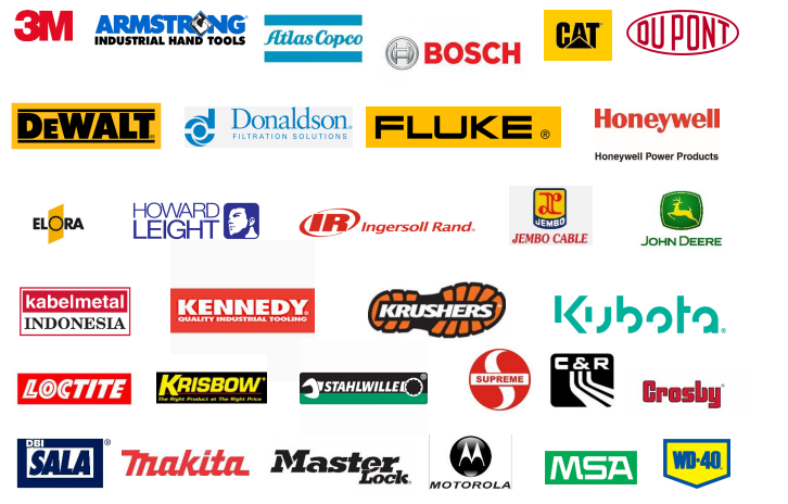Kami bekerja sama dengan berbagai brand internasional ternama seperti 3M, Bosch, Makita, Honeywell, Fluke, CAT, Kubota, dan berbagai merek industri global lainnya untuk memastikan kualitas produk terbaik bagi pelanggan.