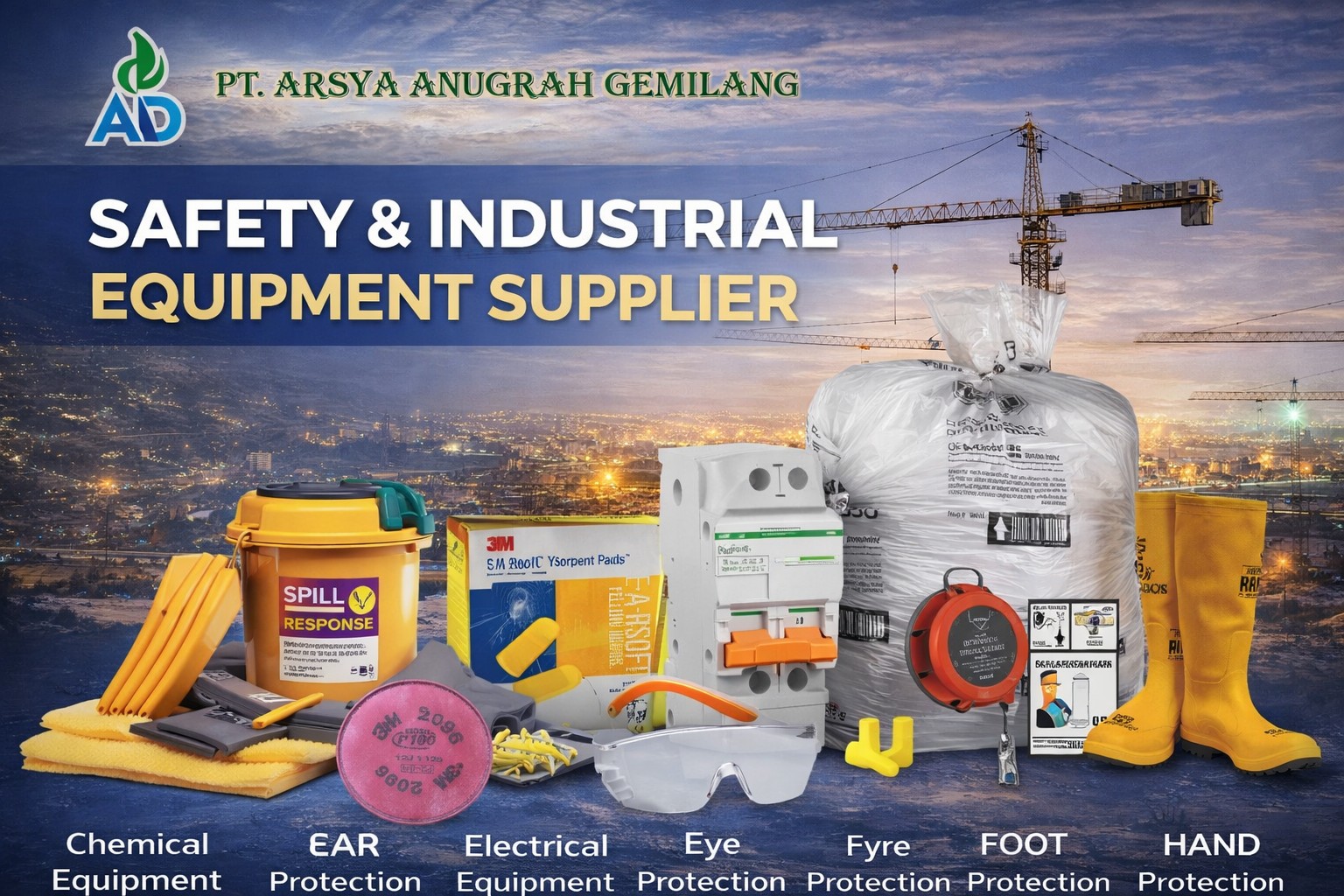 PT ARSYA ANUGRAH GEMILANG merupakan perusahaan general supplier, general trading, dan distributor alat konstruksi serta industrial equipment yang berlokasi di Jakarta. Kami menyediakan berbagai kebutuhan industri, proyek konstruksi, manufaktur, hingga kebutuhan keselamatan kerja dengan produk berkualitas dari brand terpercaya dunia.